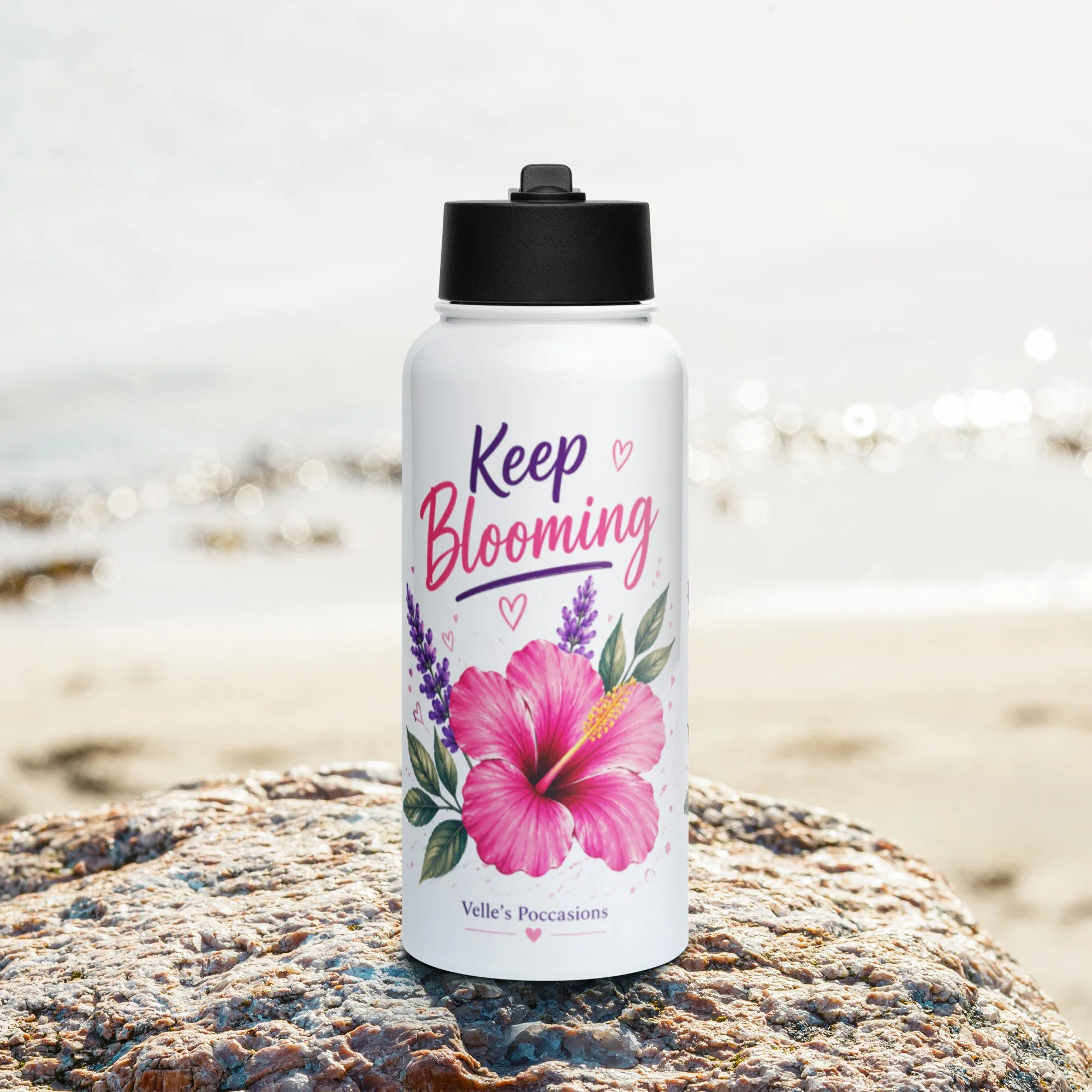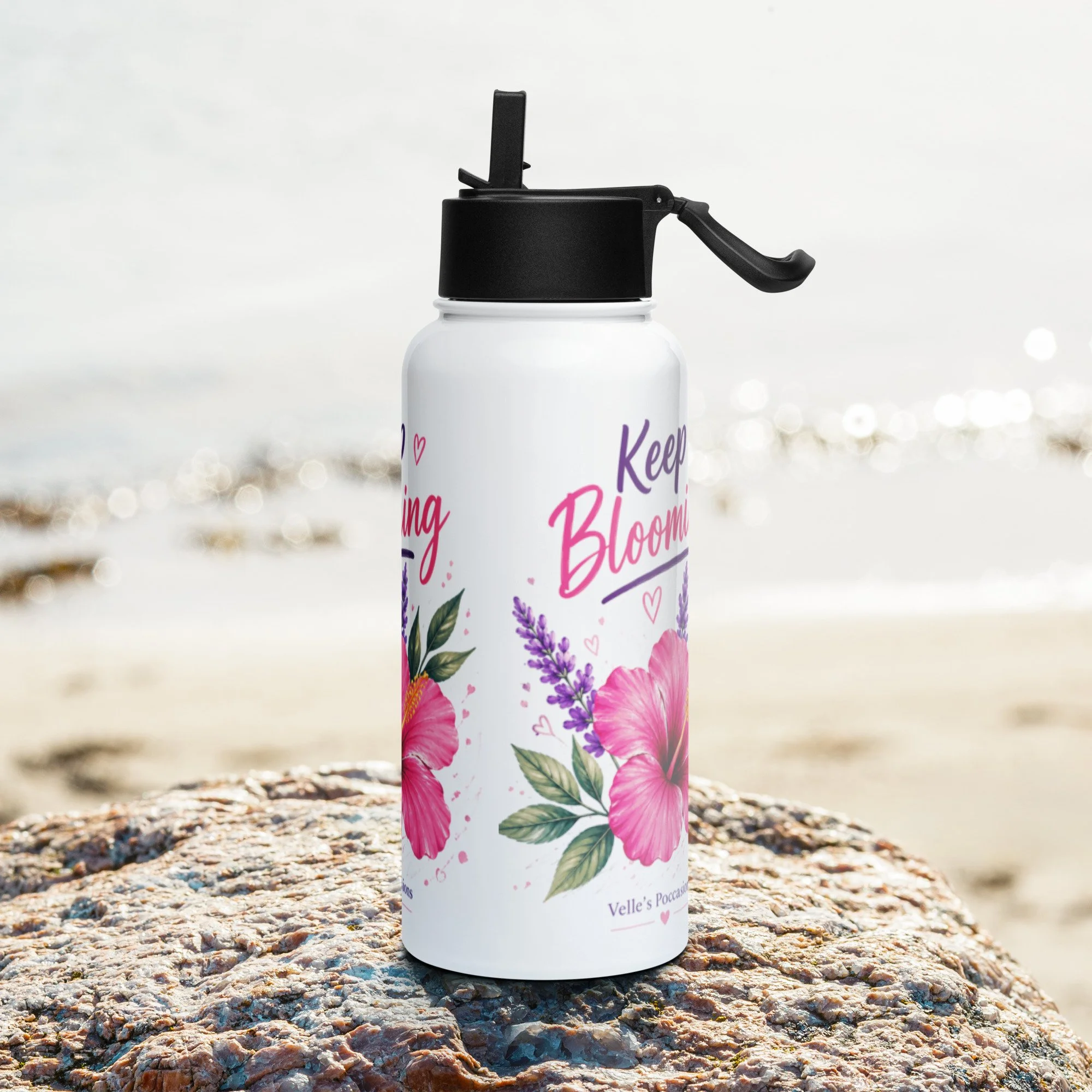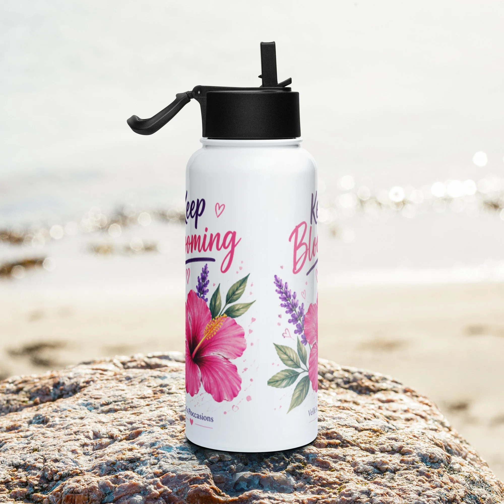 Bloom Stainless steel water bottle with a straw lid